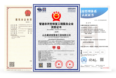 山東戴諾維管道工程有限公司位于美麗的黃河入海口-中國東營,是從事管道內(nèi)襯修復的專業(yè)化公司,主要業(yè)務(wù)有:管道非開挖內(nèi)襯修復,管道內(nèi)襯PE管修復,管道內(nèi)襯不銹鋼修復等。